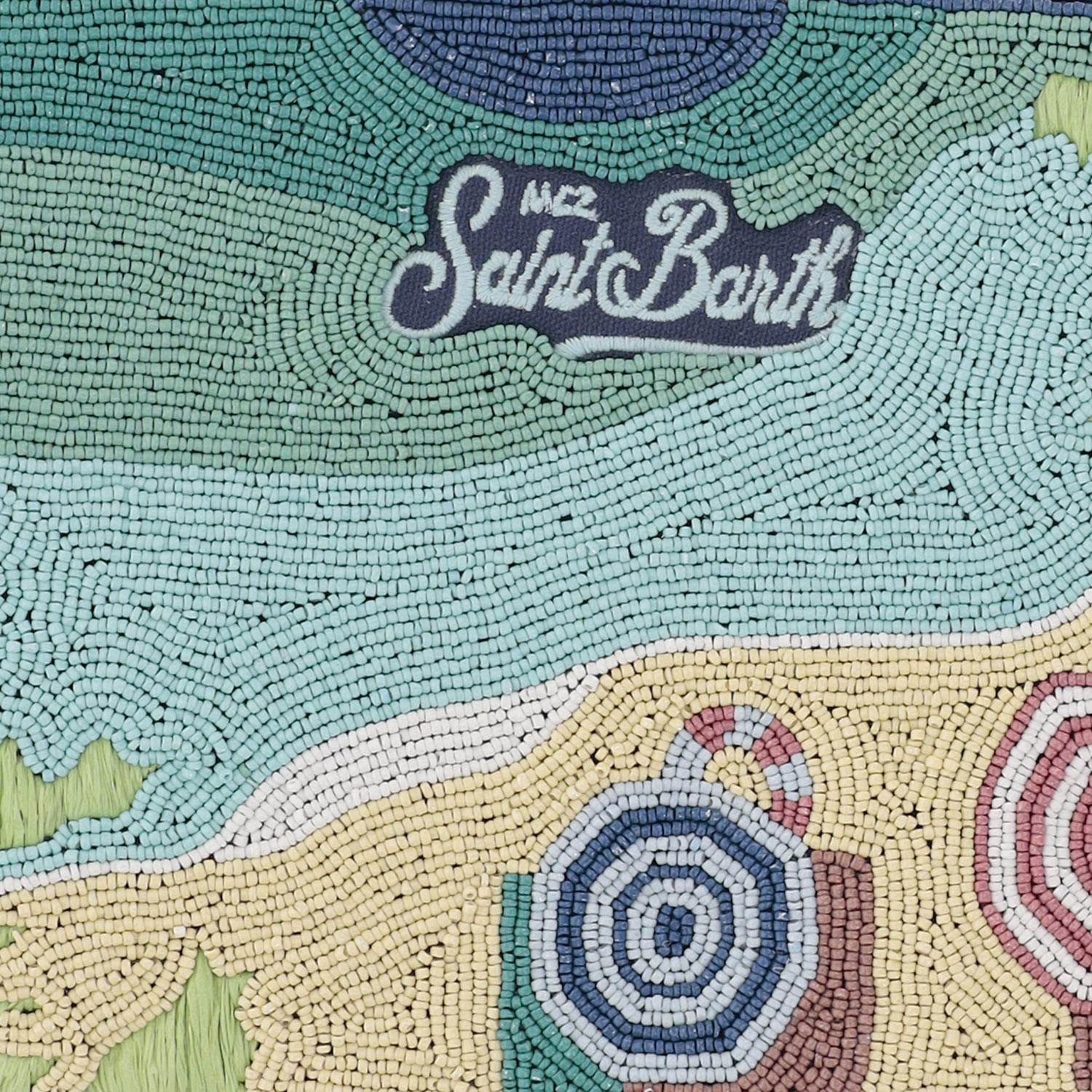 COTTON CLUTCH WITH BEADED BEACH MOTIF