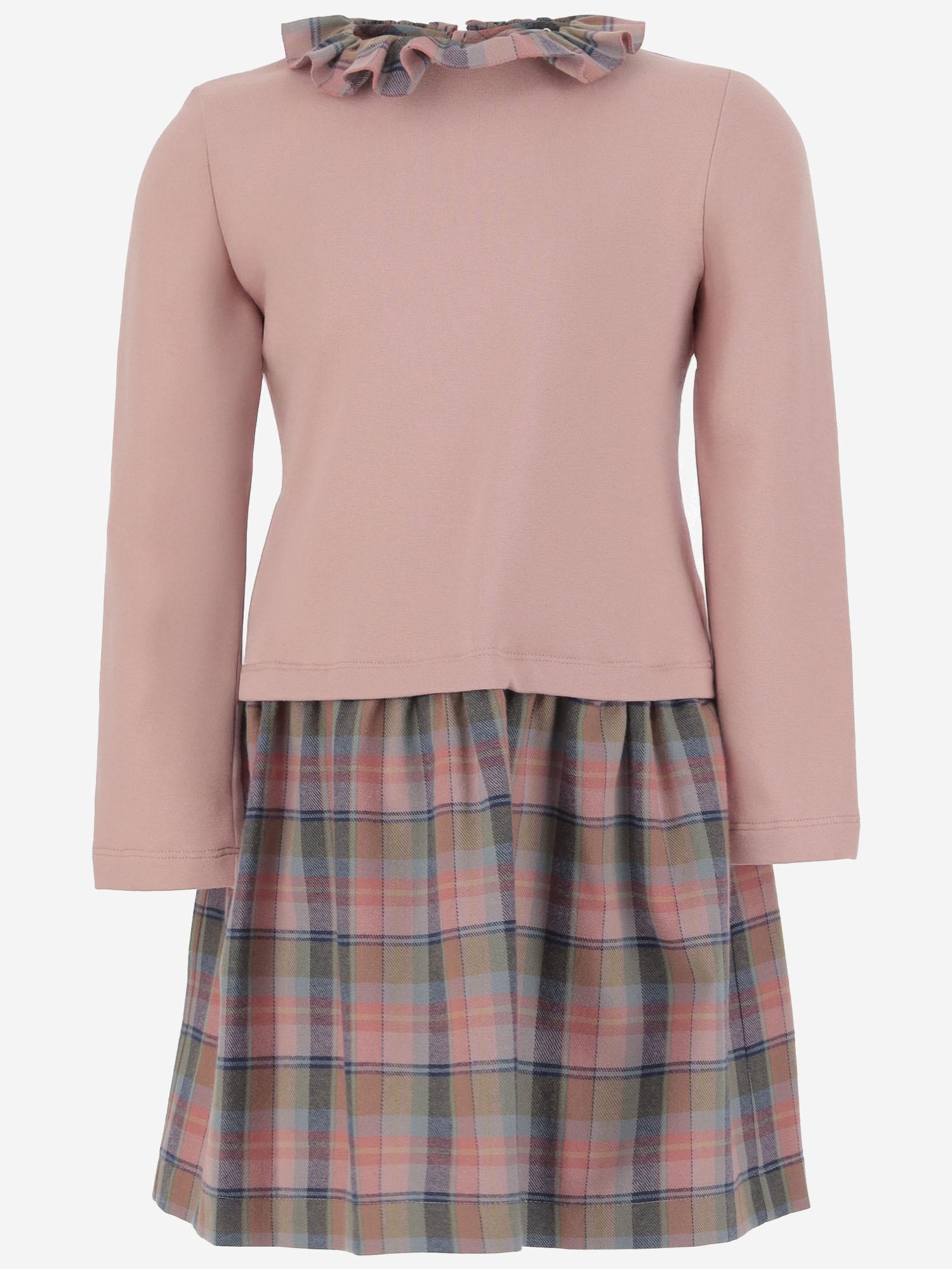 DRESS WITH RUFFLE COLLAR AND CHECK SKIRT