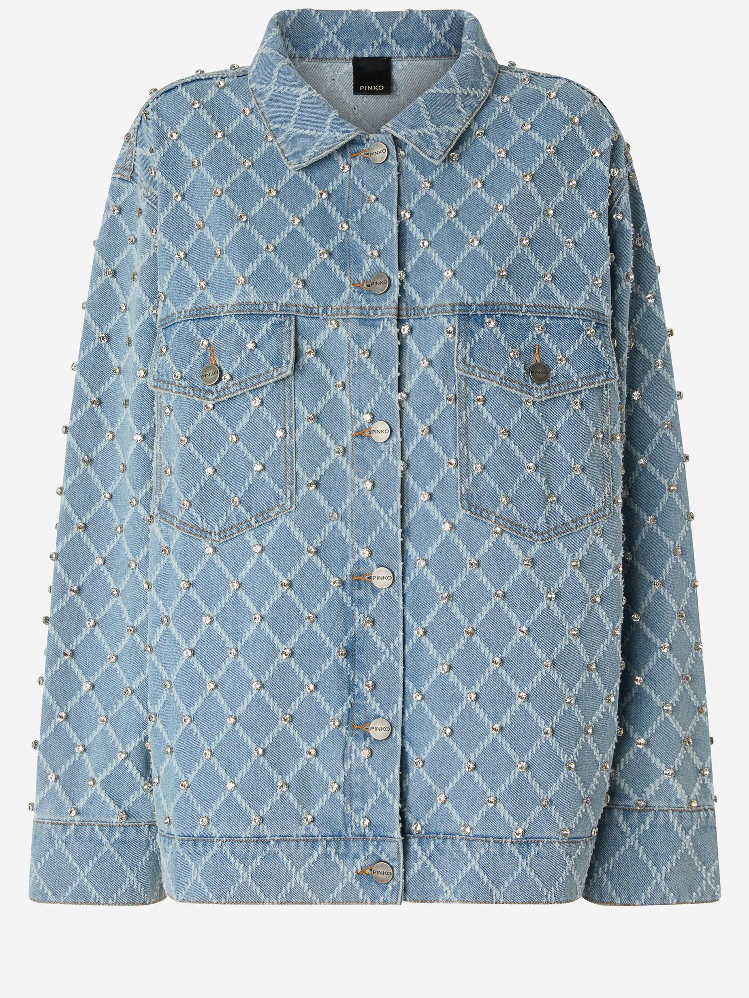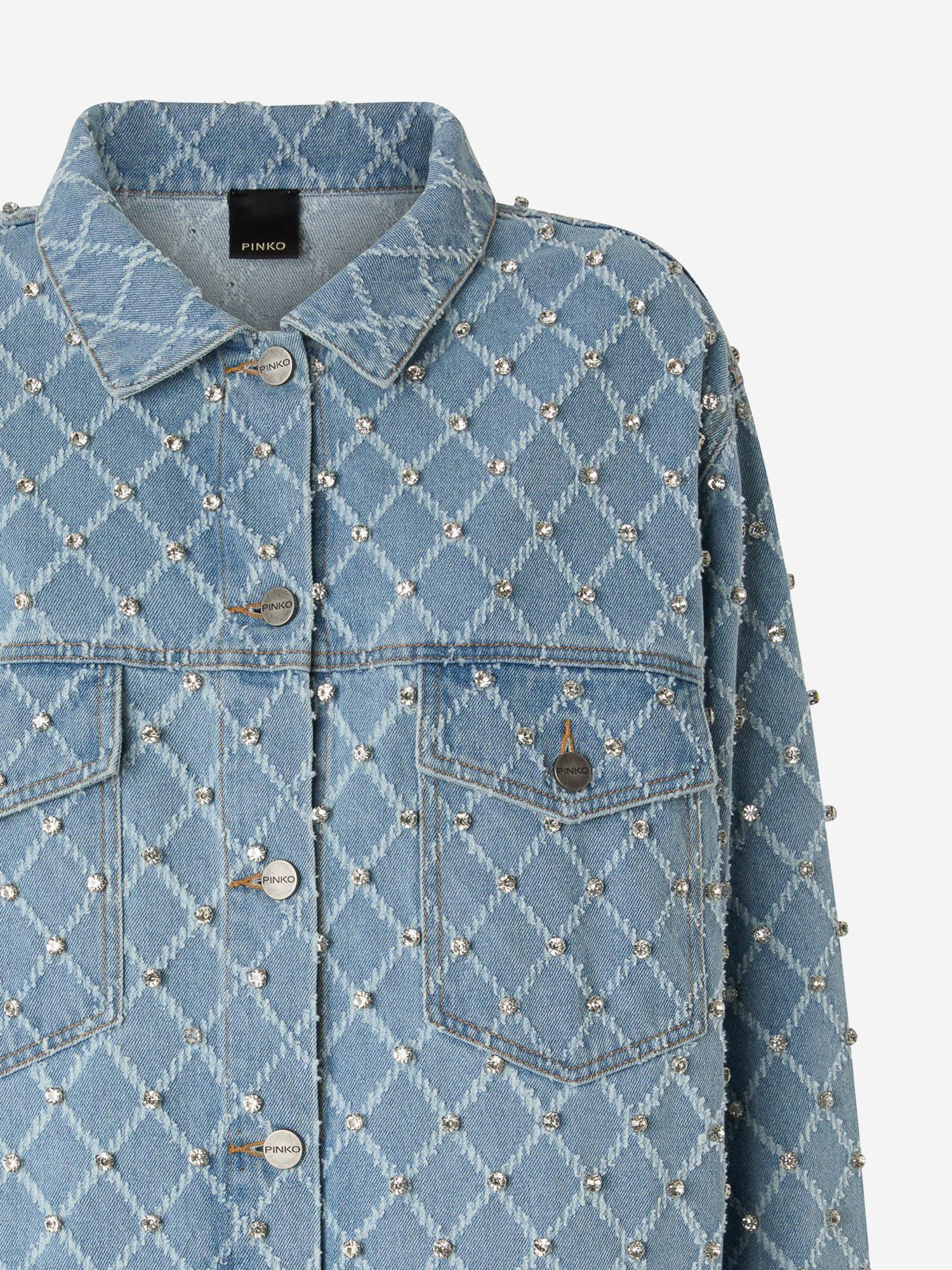 DENIM JACKET WITH DIAMOND PATTERN AND RHINESTONES