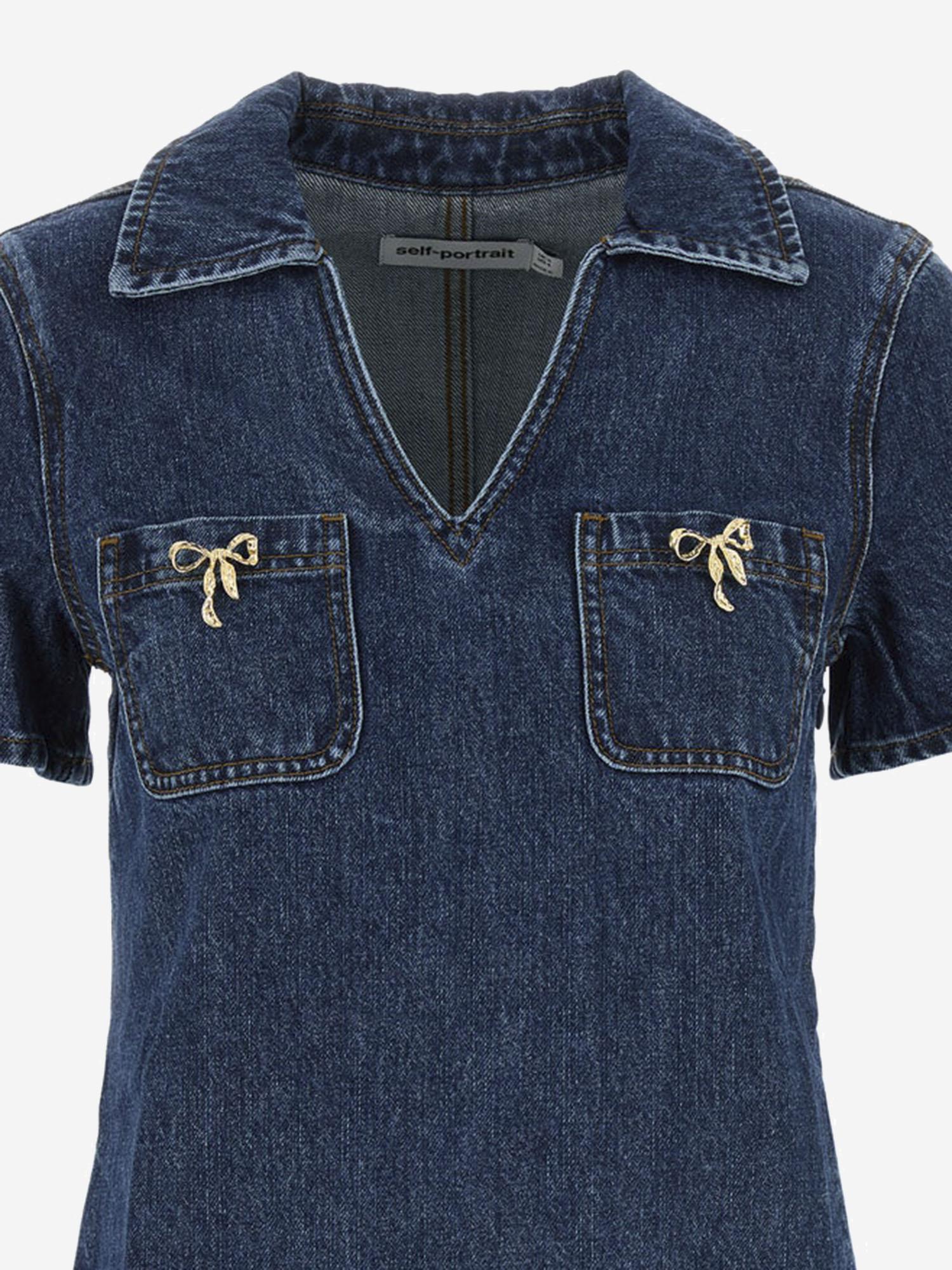 COTTON DENIM MINI DRESS WITH BOWS