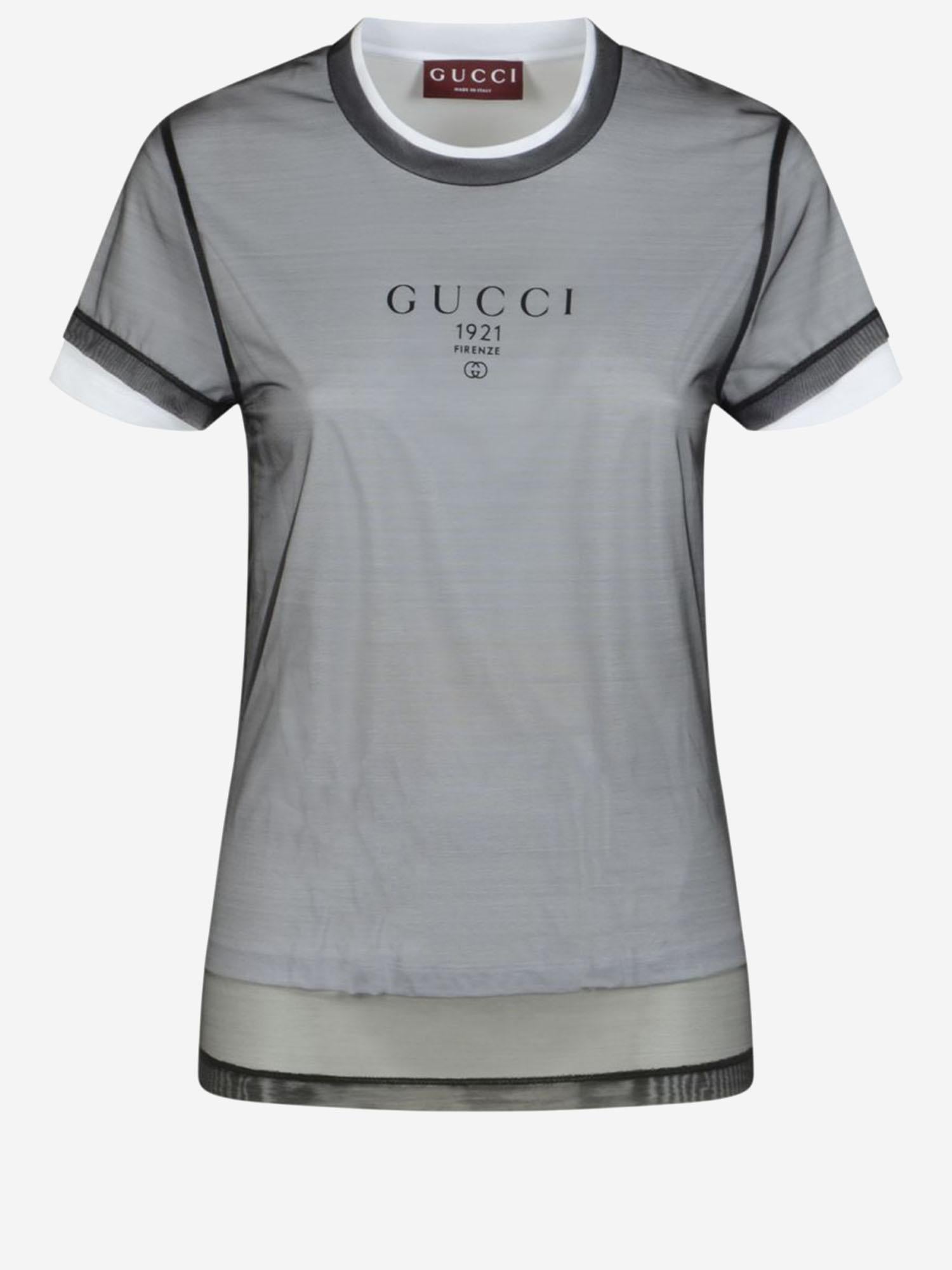 T-shirt in jersey a doppio strato con stampa logo 856822 XJHQ59097 GUCCI