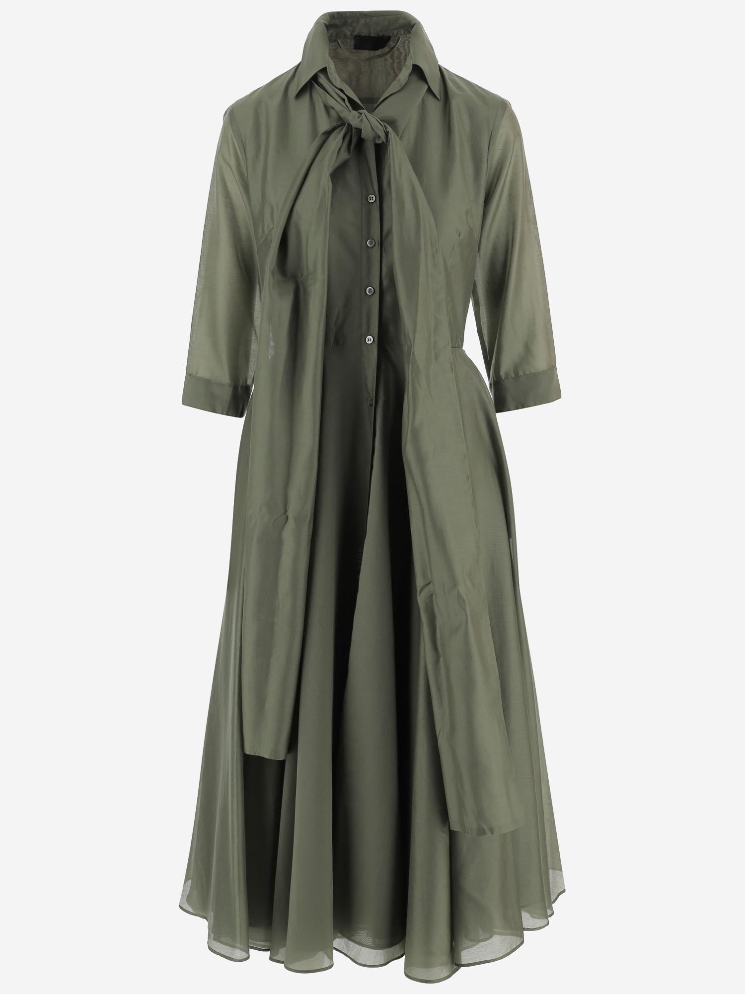LYOCELL BLEND DRESS WITH KNOTTED COLLAR