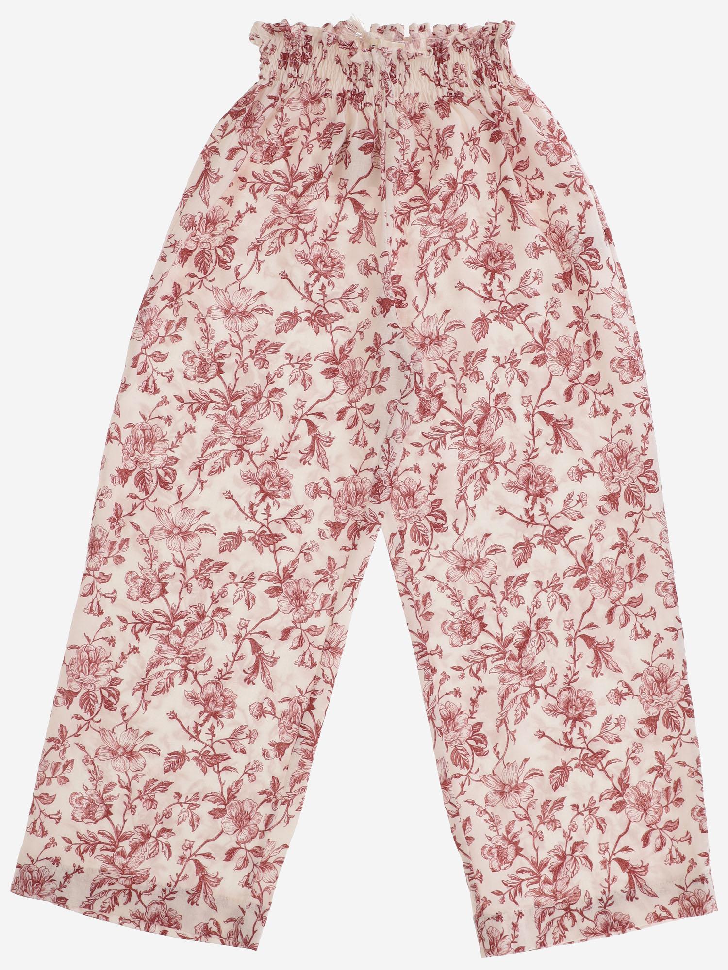FLORAL PATTERNED LINEN BLEND TROUSERS