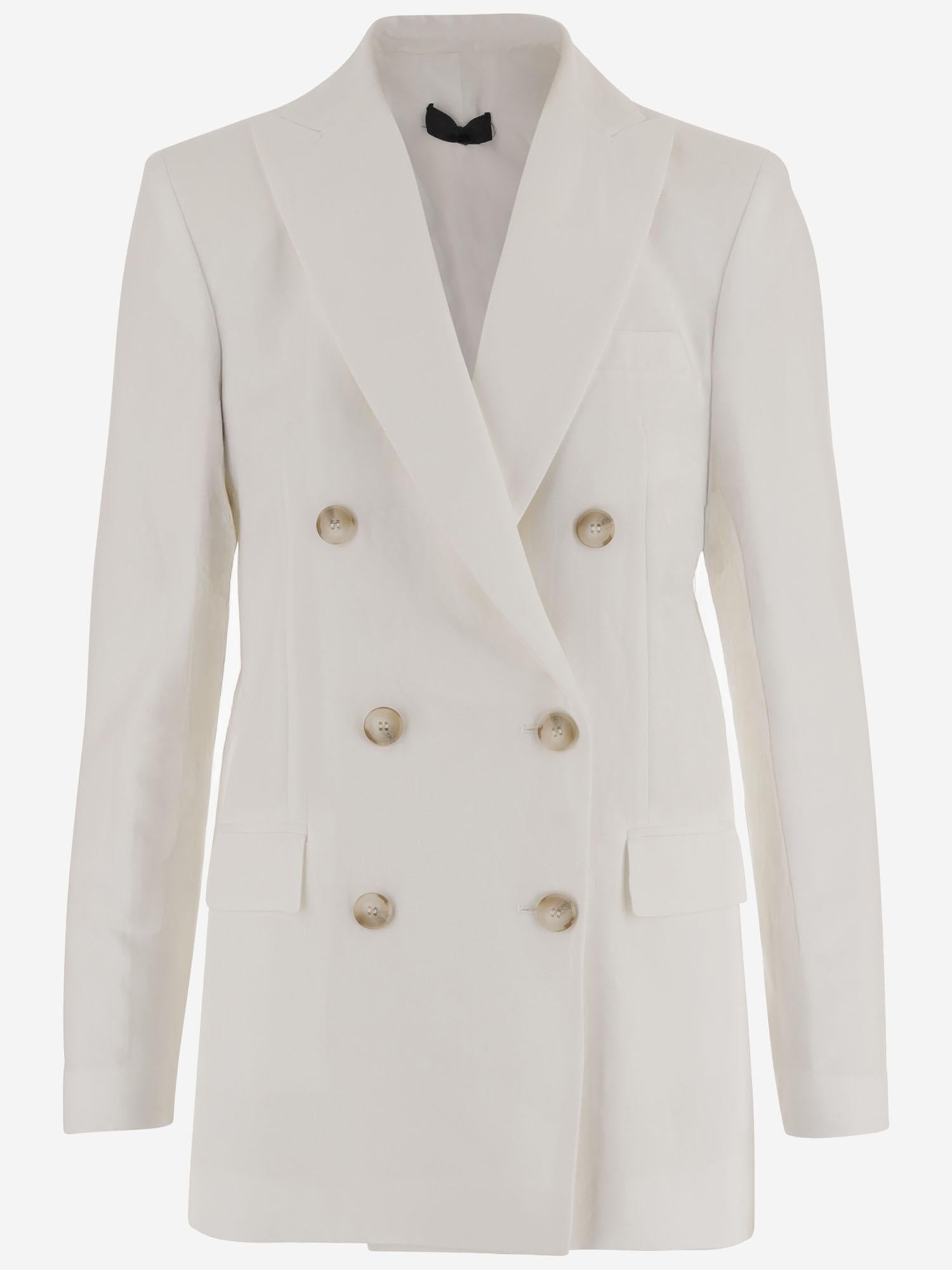 DOUBLE-BREASTED VISCOSE AND LINEN JACKET