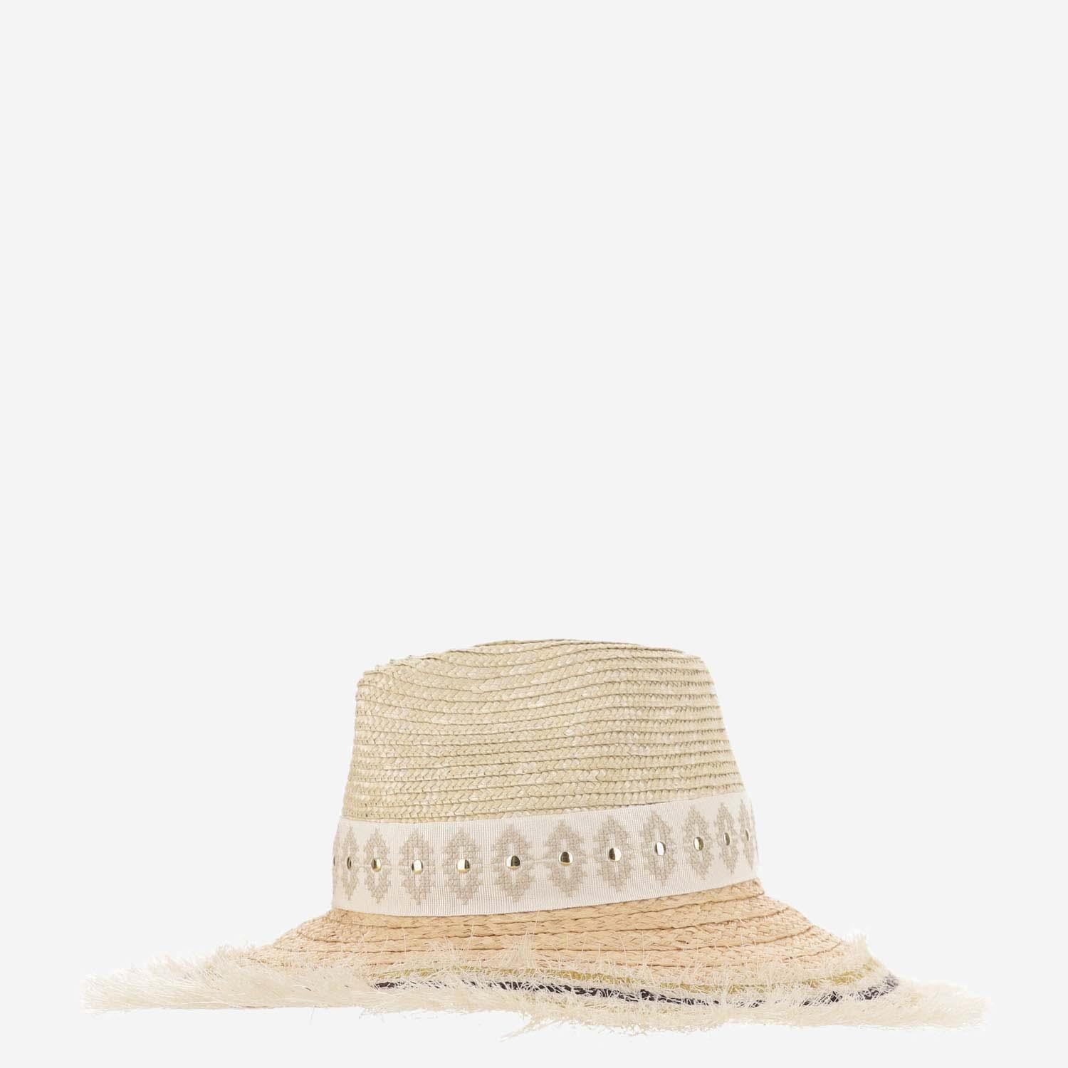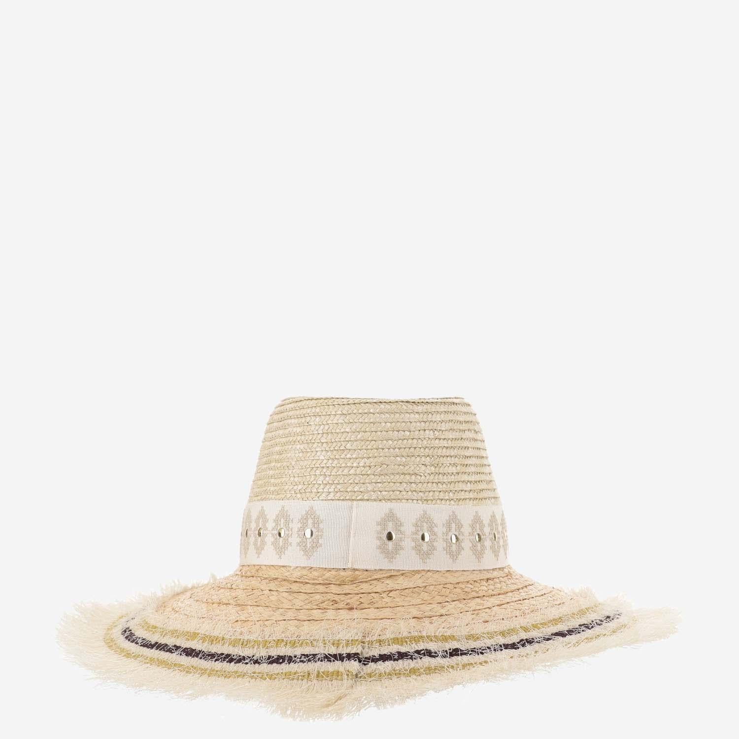 STRAW AND VISCOSE BLEND HAT WITH EMBROIDERY