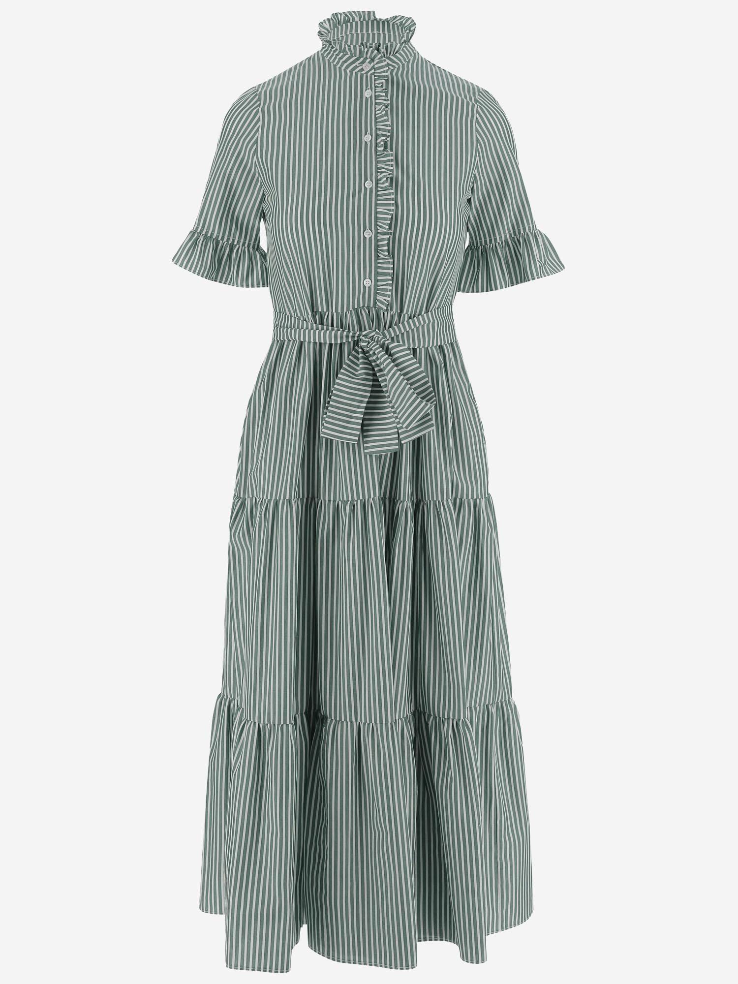 ABITO IN COTONE A RIGHE CON COLLO ARRICCIATO